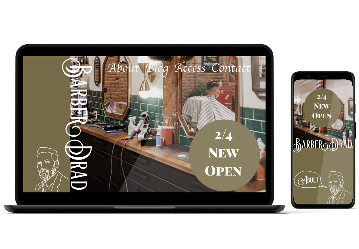 理容室イメージのWebサイトを作成いたしました。無骨なイメージのカーキをテーマカラーとし、イラストやフォントで親みやすくしています。